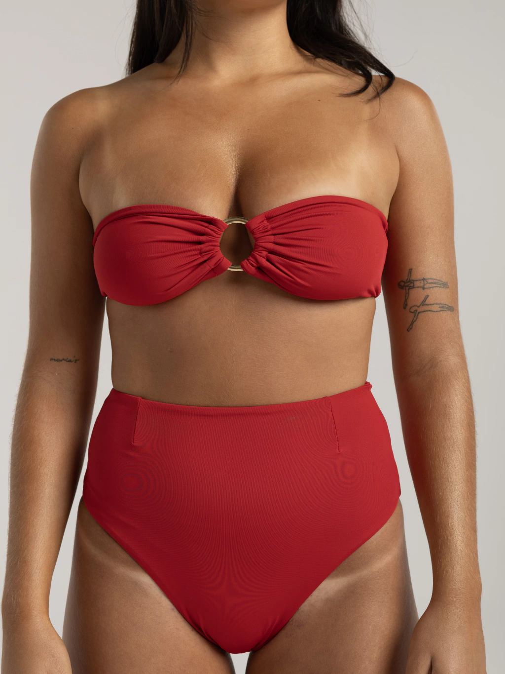 Poliamida Light, tecido biodegradável, leve, suave e macio e respirável, com fator de proteção UV 50+. Aviamento personalizado VENTI em metal, próprios para moda praia.